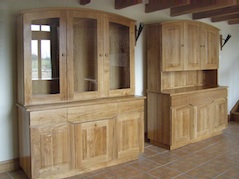 This project consisted of a dining table some three metres by one point five metres in solid Oak along with these three units to complete the dining room suite. One a solid Oak buffet designed to ressemble a piece already owned by the clients. It offered some unconventional ideas concerning the drawer fronts and incorporated moulded finger grips along the leading edges. Not something I would normally expect to do with this style of furniture, but, it was the client’s very specific wish. This unit measures 1500mm x 850mm x 500mm