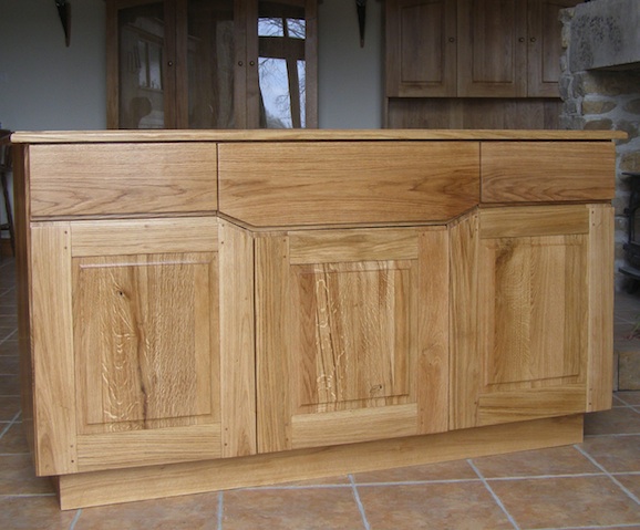 Solid Oak buffet designed to ressemble a piece already owned by the clients. It offered some unconventional ideas concerning the drawer fronts and incorporated moulded finger grips along the leading