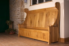 This particular version is lined with 1.5mm zinc sheet to help withstand the rough treatment of logs being dropped in or dragged out. Hopefully it will last as long as the originals of the seventeenth century. As with most of my work it is finished natural and waxed with Bees wax in Turpentine. I do stain and colour and have often French polished but, I prefer to let the wood speak for itself. Also few people are prepared to pay for the time required to produce a pristine French polish finish and even fewer are prepared to accept the delicacy of the finish and the extra care needed if it is to stay that way.