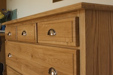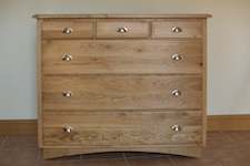 A classic chest of drawers is always a welcome addition to any household. This particular design is in solid Oak with quarter sawn drawer boxes and planted frontals is a frequent request. With slight variations almost a staple. As always drawer boxes are constructed using hand cut dovetails. It is the one joint for which there is no compromise. This particular chest is finished using my favourite Bee's Wax dissolved in turpentine.